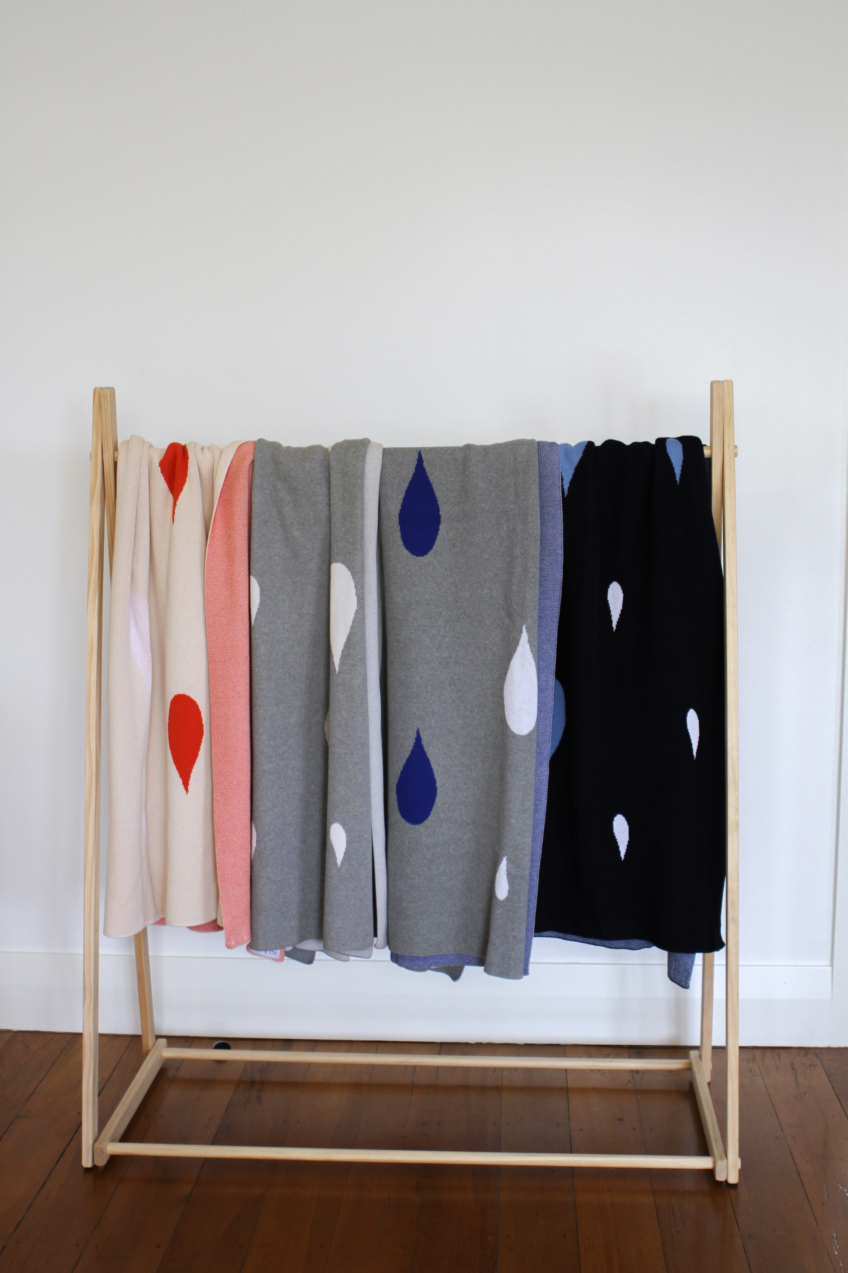Grey Marl with White and Blue Raindrops Jacquard Blanket